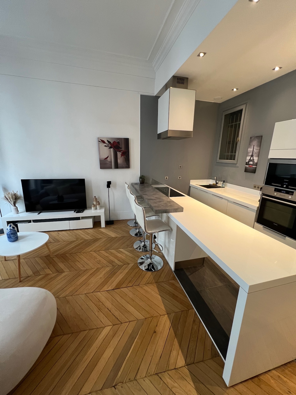 Appartement lumineux et moderne, au cœur de Paris. Vous profiterez d’un espace confortable et bien agencé, parfait pour un séjour à 2 à 4 personnes, que ce soit en couple, en famille ou entre amis. Situé dans un immeuble récent (2014) avec ascenseur, l’appartement offre un environnement calme : la chambre donne sur une cour intérieure, garantissant des nuits paisibles. À proximité immédiate des lignes de métro 3, 4, 8 et 9, vous pourrez facilement explorer tout Paris. Appartement non-fumeur.