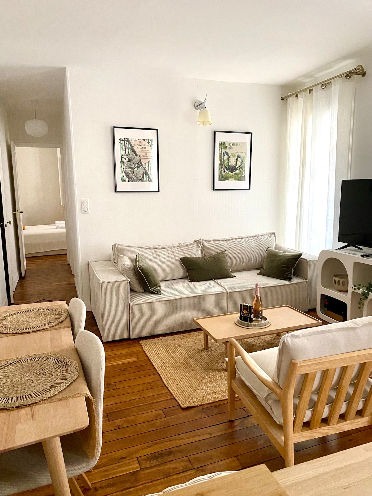 60 m2 klimatisert leilighet med eksklusiv innredning i hjertet av Paris, i det historiske Montorgueil-distriktet, kjent for sine matbutikker, små bistroer og restauranter. Leiligheten ligger i 1. etasje i en bygning i en veldig rolig gate. Den ble renovert i 2023 av en kjent arkitekt, og er derfor svært godt utstyrt med utstyr av høy standard. Du vil føle deg som i en hotellsuite med ekstra sjarm, en ekte parisisk bolig.