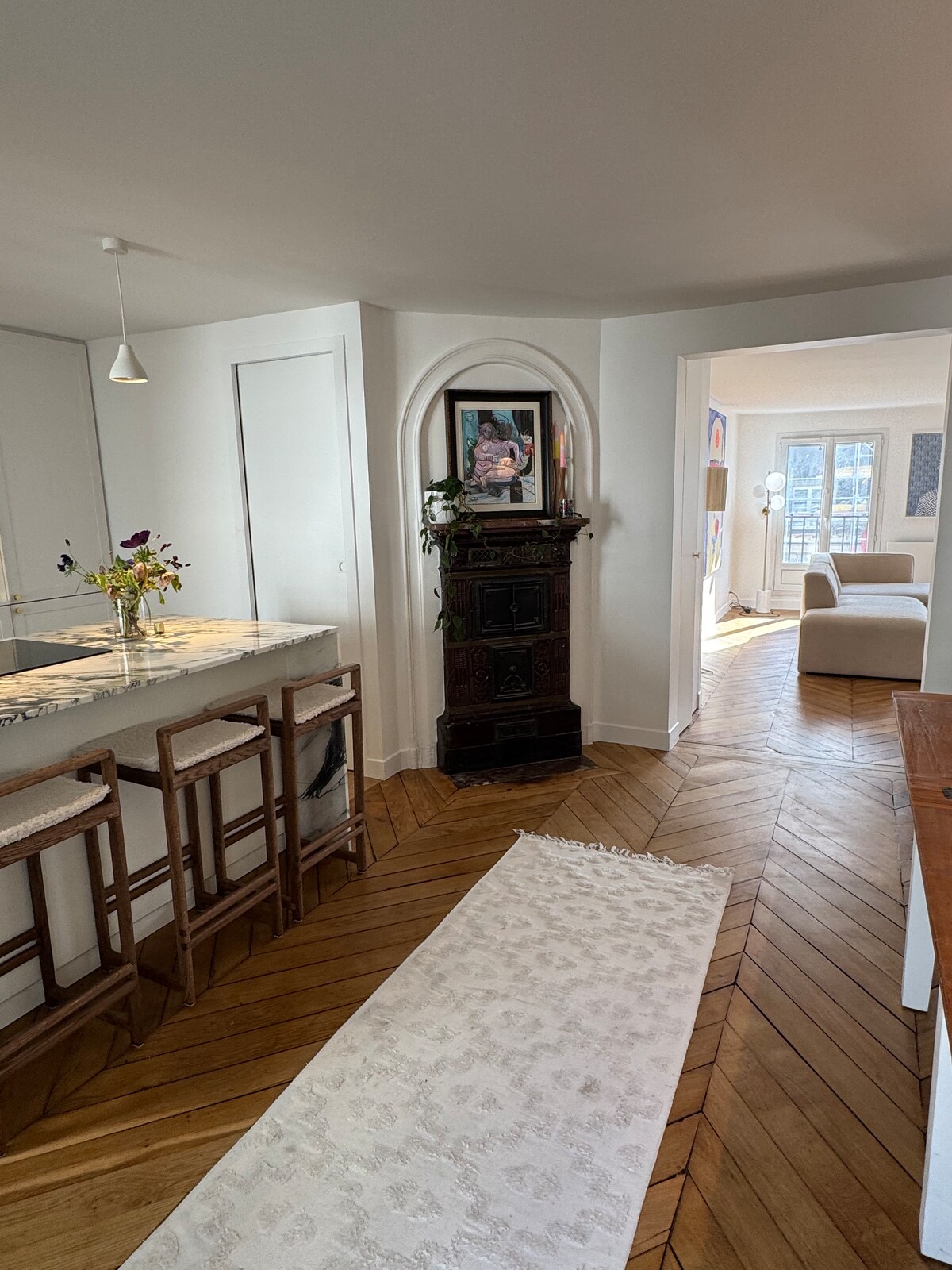 75007: Oppusset leilighet, gammel bygning i hjertet av VII. arrondissement (Invalides) - 5. etasje med heis, balkong og spektakulær utsikt over Eiffeltårnet. En liten perle med peis og dekorative lister, aircondition, stue med utsikt mot vest, kjøkken, dusj, dobbeltseng i soverommet som vender mot gårdsplassen, safe. I nærheten av Rue Saint Dominique, Rue Cler og deres butikker. 3 minutter å gå fra metro Invalides og Esplanade des Invalides.