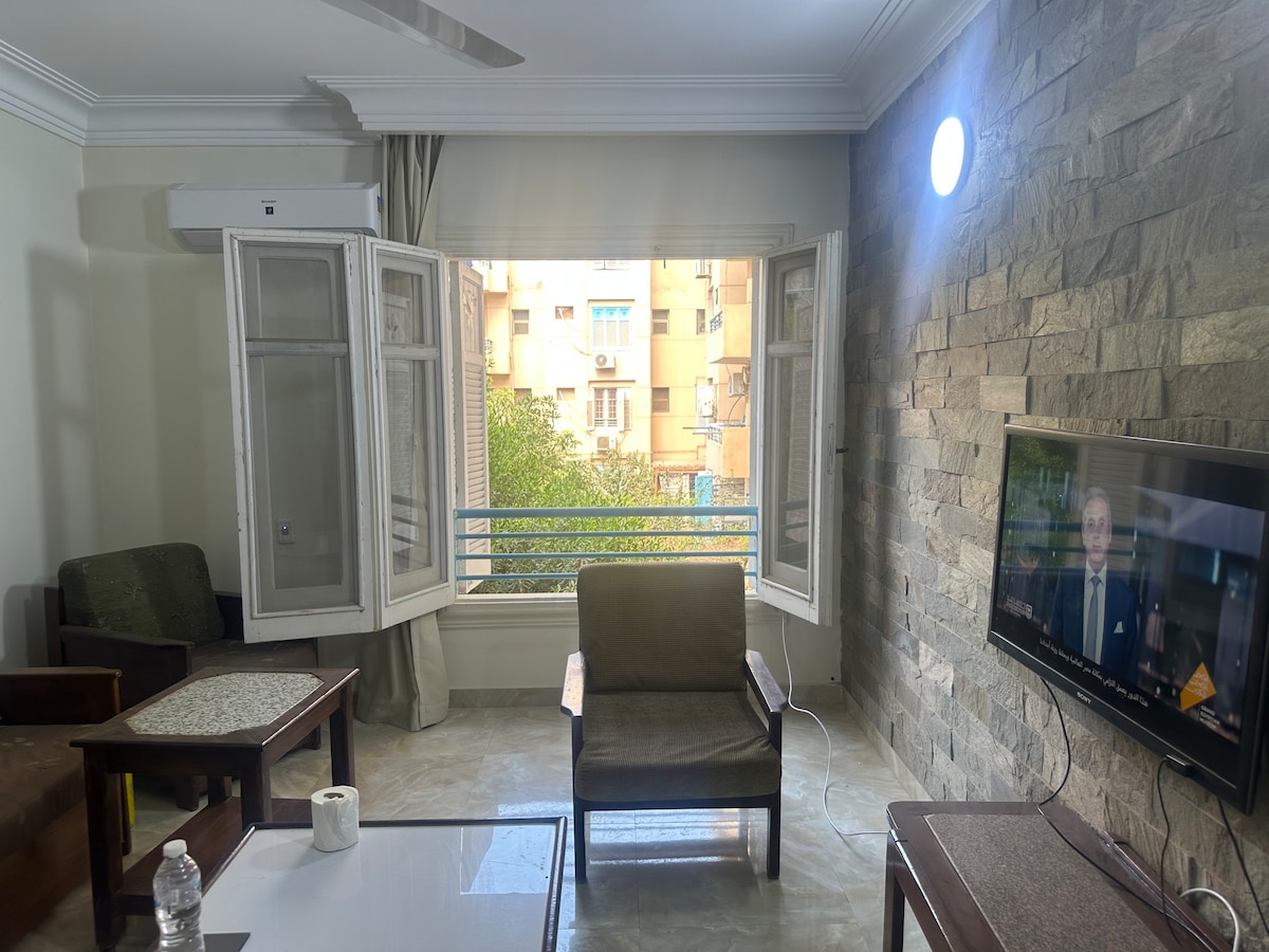 Koselig og varmt sted i nærheten av alle tjenester. Ett minutt til el hosary square, 15 minutter til kjøpesenteret i Arabia og kjøpesenteret i Egypt, 35 minutter til Nilen og sentrum, 20 minutter til pyramidene i Giza. To soverom og fire senger med to bad. Heis og trådløst nettverk.