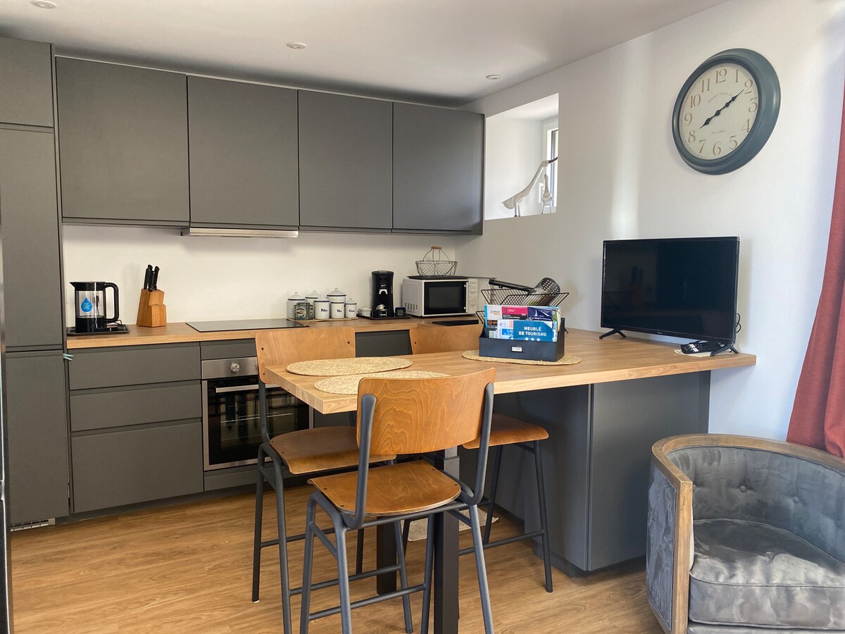 Leilighet i første etasje på 65 m2, rolig og nær sjøen 2 terrasser, hage på 600 m2 Fullstendig renovert - nye og komfortable senger 2 soverom - Sengetøy og håndklær følger med. Hage, inngang, helt privat parkering GR 34 200 m, strand 250 m .Viviers 500 m Kite-spot 3 minutter med bil Oppbevaringsrom 7 m2 Kvalitetssykler tilgjengelig Avhengig av tilgjengelighet, mulighet til å leie hele huset (eller 2 leiligheter) for 8 personer. Rengjøring på forespørsel 30 euro