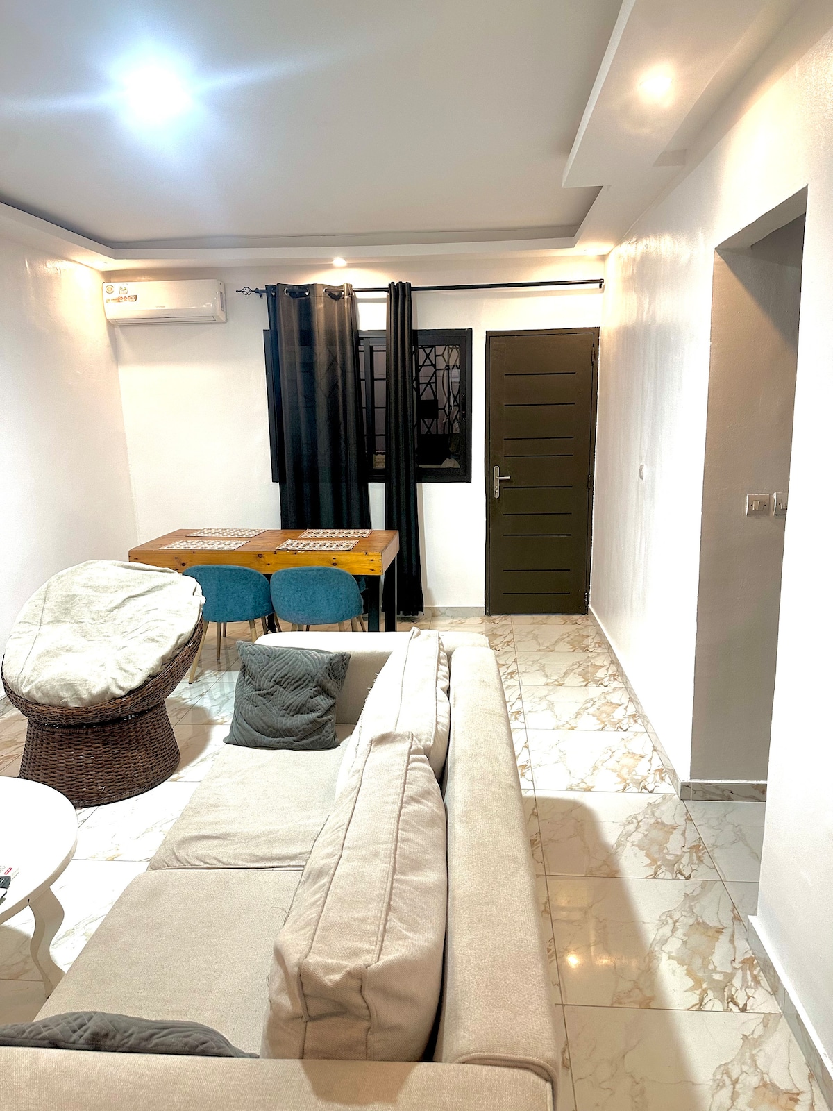 I hjertet av Cocody, mellom Vallon og Riviera 2, i nærheten av universitetshagene, oppdager du et sjarmerende lite forlengelseshus i geobetong (rå jordklosser). Leiligheten har et soverom med klimaanlegg, ett bad, en sovesofa, en uteterrasse og ubegrenset tilgang til bassenget og hagen! Du vil nyte alle de moderne bekvemmelighetene til en rolig, ren og velutstyrt overnatting.