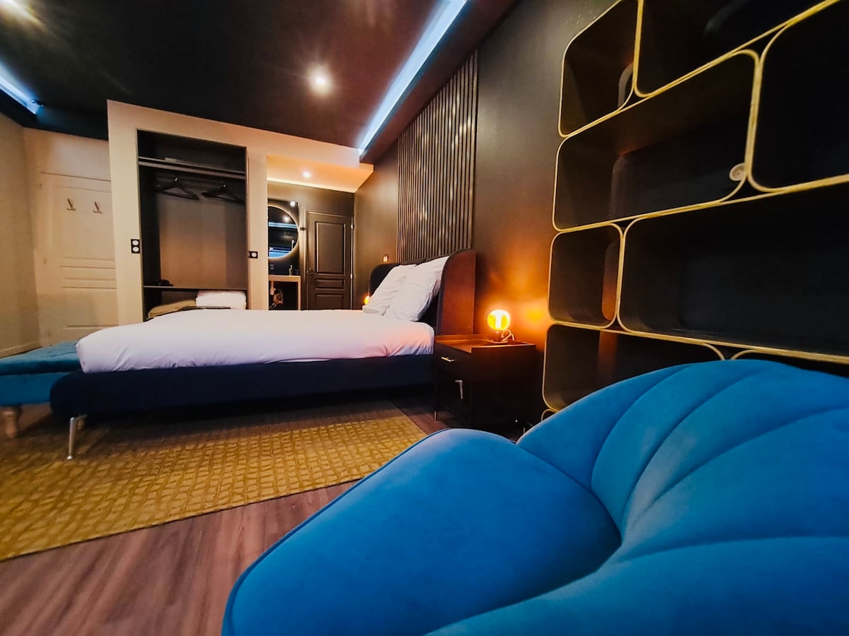 ❤️🔥 Oppdag luksusfløyel og SKINN 20 minutter fra Paris, perfekt for en romantisk og sexy ferie ! 💎 Spabad, privat sauna, king-size-seng med skyeffekt, strippestang, tantra-sofa osv. 💋 Utforsk nye opplevelser og skap uforglemmelige minner sammen i det utrolig utstyrte, hemmelige lekerommet i BDSM 🎬 92" kino ansikt mot sengen med Netflix, Prime Vidéo, Disney+, Spotify 💫 Flykt til et fredelig og luksuriøst tilfluktssted for en unik og minneverdig opplevelse !