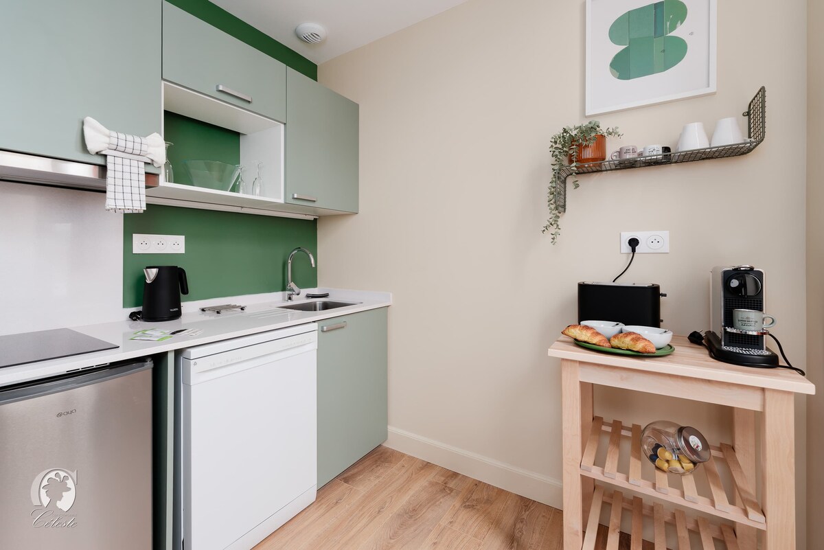 Velkommen til Vichy! Denne leiligheten vender mot parkene og ligger bare en kort spasertur fra sentrum, og den er ideell for et opphold for et par eller en familie. Du kan nyte spaserturer langs elven Allier, enkelt komme deg til termalbadene, butikkene og restaurantene og slappe av i rolige, grønne omgivelser. Vi bor rett over leiligheten, noe som gjør at vi enkelt er tilgjengelige ved behov, samtidig som vi fullt ut respekterer personvernet og uavhengigheten din under hele oppholdet.