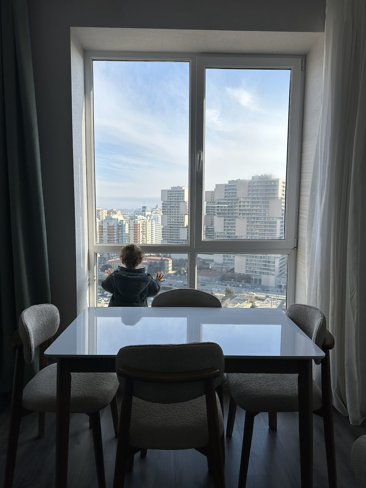 Velkommen til den stilige leiligheten min i niende etasje med heis, som ligger i den mest sentrale og prestisjetunge delen av Baku. Bare to minutter fra den berømte Baku City Circuit, og den er omgitt av landemerker, luksushoteller, kjøpesentre og promenaden langs vannkanten. Fra panoramavinduene og den store balkongen kan du nyte en fantastisk utsikt over Kaspiskehavet, byens skyline og Formel 1-banen i sin helhet – som om løpet utspiller seg rett foran øynene dine.