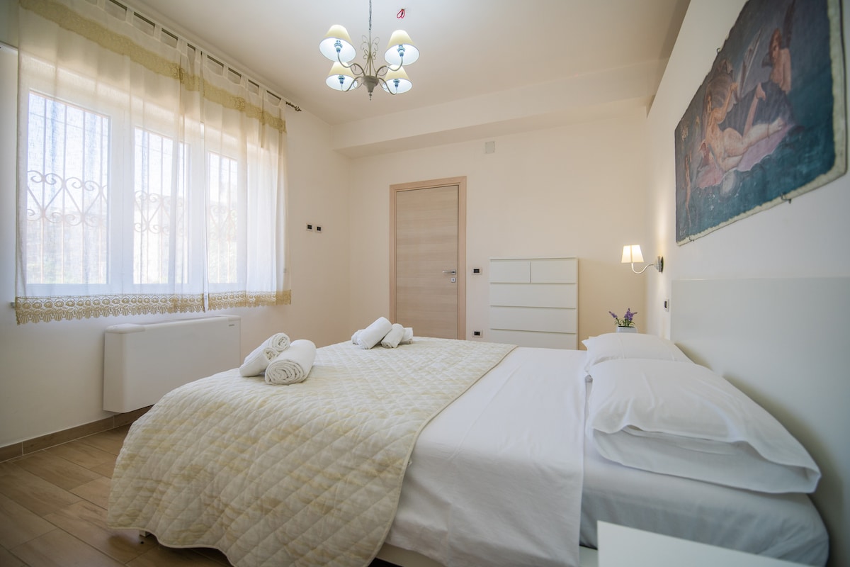 Very large and spacious apartment, large terrace with Vesuvius view, free parking, 3 bedrooms with 9 beds, well-equipped kitchen, free washing machine, high chair, free cot and changing table, 2 bathrooms, suitable and equipped for any type of family . It is a 20/30 minute walk from the centre, the ruins of Pompeii and the Basilica. Well connected to reach Sorrento, the Amalfi coast, Naples and more by car, taxi or train.