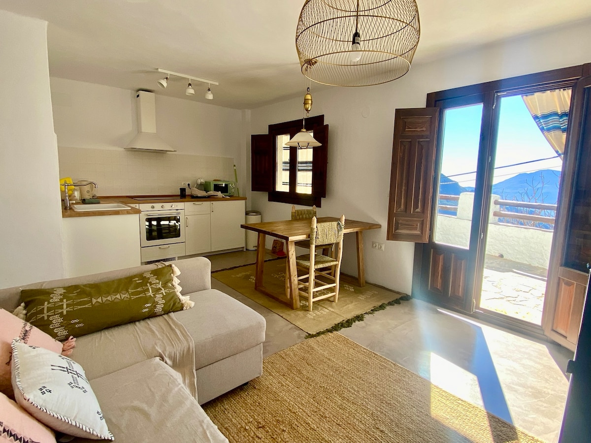 Det er et tradisjonelt hus som ligger i utkanten av landsbyen med utsikt over de høyeste toppene på halvøya, Mulhacén 3482 og Veleta. Vær oppmerksom på mobilitetsevnen din, siden det er mange bakker i landsbyen og trapper i huset. Om sommeren kan det være fluer og lukter av storfe på "terrassen", siden det er en geitestall i nærheten. Du kan parkere eller bruke den lille parkeringsplassen i Espeñuelas, som ligger 15 meter fra huset, til lasting og lossing, men sørg først for at du kan kjøre dit.