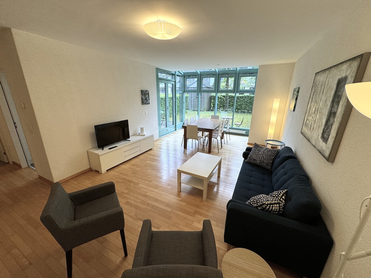 Ny, romslig, stille leilighet (115 kvm), med fantastisk utsikt over elven og inn i de grønne åsene. Gjester har tilgang til en privat parkeringsplass i den underjordiske garasjen med veggboks for å lade bilen, et eksklusivt kjøkken med stekeovn, damper, oppvaskmaskin osv., privat vaskemaskin/tørketrommel, to bad (dusj/toalett, badekar/toalett), to soverom og et komfortabelt kontorområde. Zürich sentrum ligger bare ti minutter unna med offentlig transport og kan også nås på sykkel. Perfekt for langvarige opphold og familier