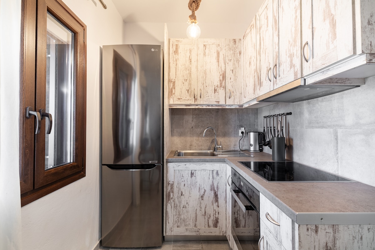 Huset er bygget i tråd med den kykladiske arkitekturen og er moderne innredet, og det gir et komfortabelt opphold på en «grekisk chic» måte. Den perfekte beliggenheten tilbyr mange valg for å utforske den praktfulle gamlebyen med de hvitvaskede kapellene, de berømte vindmøllene og Lille Venezia, som ligger bare noen få skritt unna. Huset er designet med en aura av den egeiske sommeren og er fullt utstyrt, slik at gjestene våre kan føle seg som hjemme.