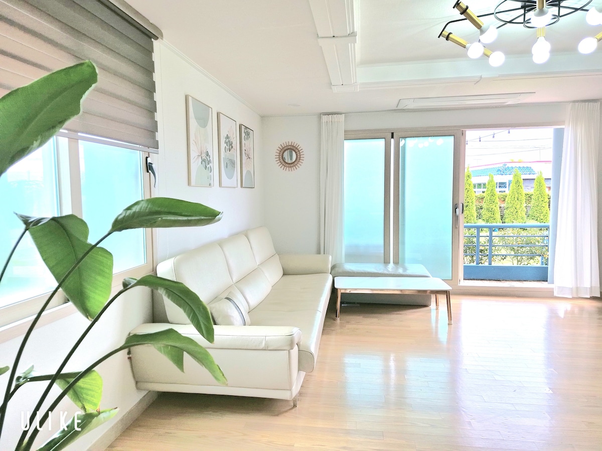 Hei. Vi ønsker å skape et rom som lar deg glemme frustrasjonen i byen ved å lytte til lyden av bølgene ved sjøen. Vårt sted ligger 20 minutter fra flyplassen, og alle rommene har utsikt over Jejus blå hav. Romoppsett 3 etasjer høyt rom på 12 pyeong (bruk av heis) 1. Soverom : Rommet er et åpent kjøkken. Seng, veggmontert TV, tebord og bord for to personer, kleshenger, stativ, vask, klimaanlegg, lite kjøleskap (separat fryser), induksjon 2. Kjøkken : Servise og kjøkkenutstyr for 2 personer 3. Bad : Solsikke dusj, håndkle, sjampo, balsam, dusjsåpe, såpe, toalettpapir (Tannbørster kan ikke leveres i henhold til hygieneadministrasjonsloven.) 4. Terrasse 5. Grillplass Havsgrill koblet til havet: Kostnad 20 000 won (vi forbereder kull og grill.) Det er et eget grillområde ved siden av lobbyen, med tanke på regn. 6. Parkeringsplass: Elektrisk parkering er mulig. 7. Vaskerktøy og tørketrommel må bestilles separat i første etasje. Takk.