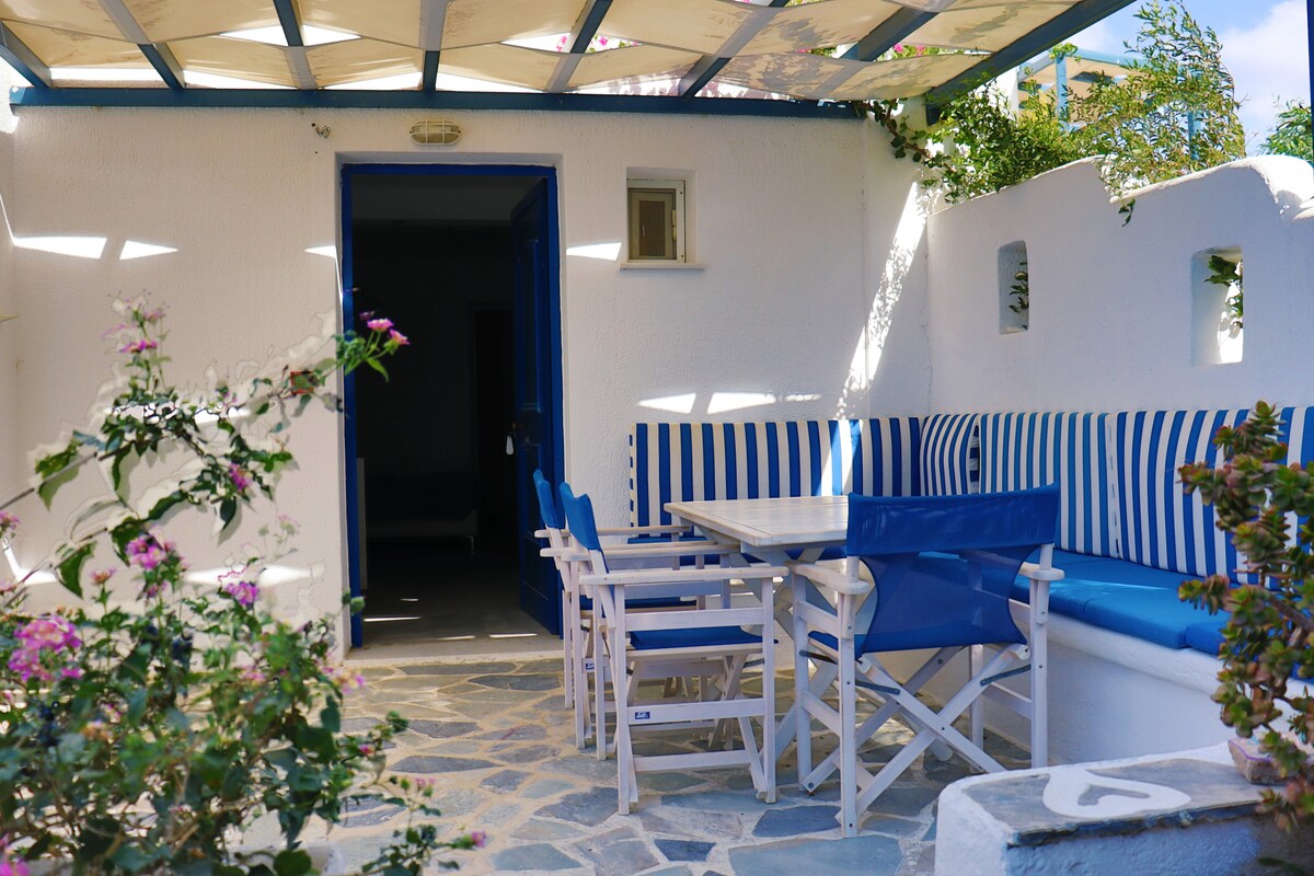 Mitt hus på landet, som ligger på en 700 kvm eiendom, har to soverom, et tekjøkken. Ideelt for familier med barn, ti minutter til fots til stranden i Agios Prokopios. Det har privat parkering, trådløst nettverk, AC og en hage med vinranker, sitron- og aprikotrær.