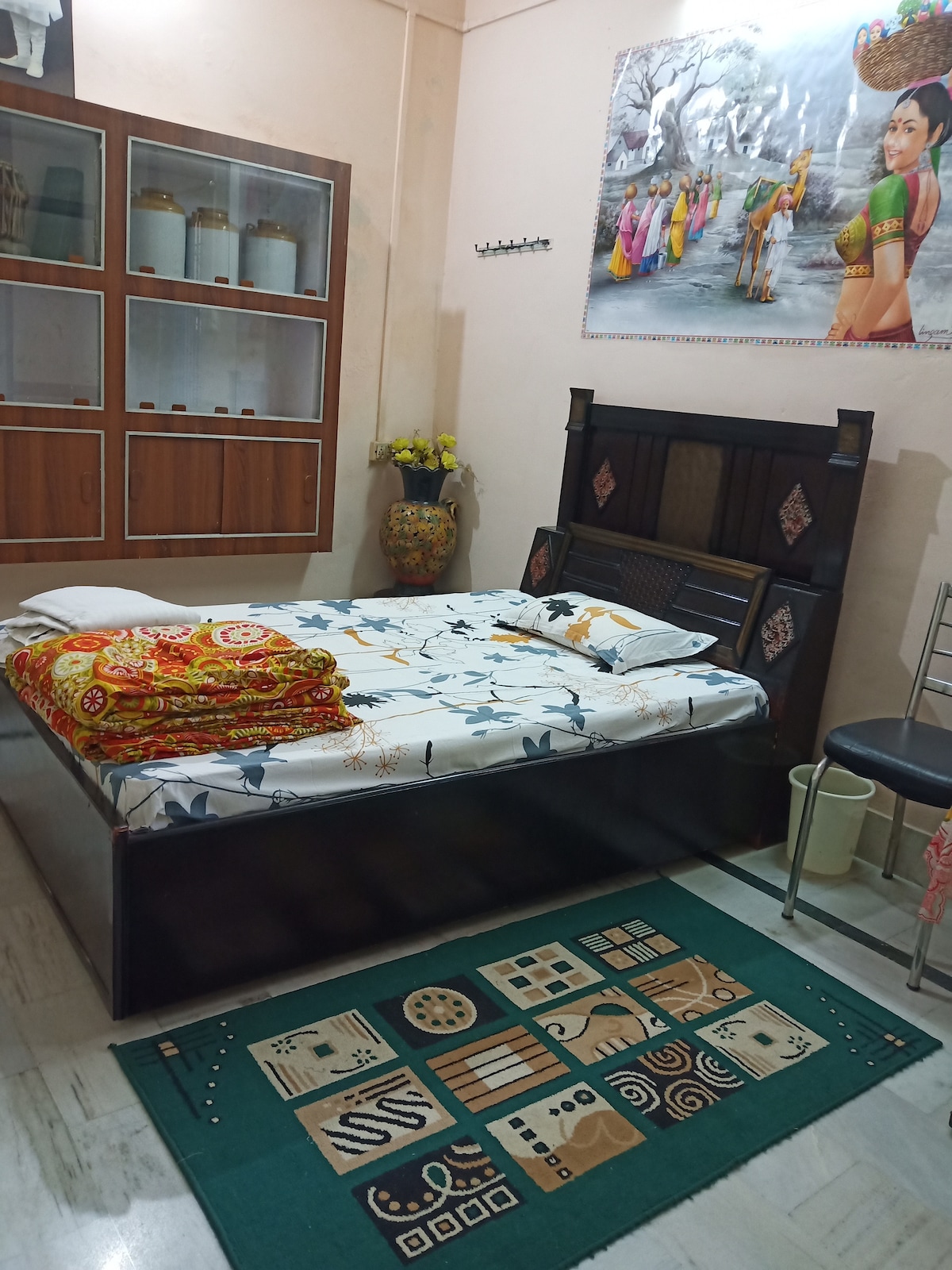 🏡 Et hjem langt hjemmefra! Nyt oppholdet ditt i et romslig og fredelig privat hus. 🌟 Perfekt for familier, venner, par og grupper som leter etter et koselig opphold med moderne fasiliteter, bare ti minutter fra Taj Mahal. ✨ Høydepunkter: ✅ Klimaanlegg ✅ Parkering. ✅ Raskt 5G-nettverk ✅ LCD-TV (Hotstar og OTT-er). ✅ Romslig stue (sofagruppe). ✅ Funksjonelt kjøkken ✅ Spisebord ✅ Trinnfri tilgang: Trygg og vennlig for barn og eldre gjester 📍Førsteklasses beliggenhet: • Taj Mahal (3 km), Agra Fort (5 km) • Kafeer og restauranter i nærheten