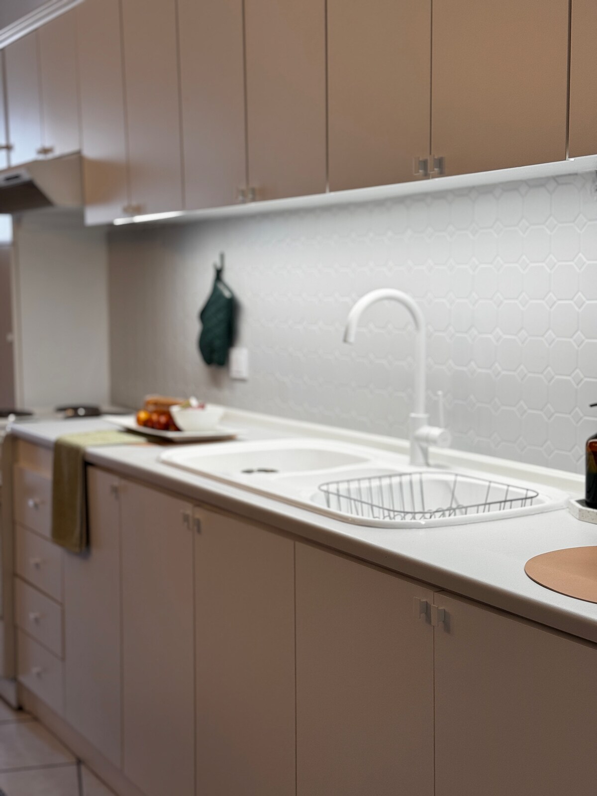 I hjertet av Ptolemaida, i Vasilisis Sofias-gaten, finner du det vakre loftsleiligheten vår. Helt tilpasset/håndlaget interiørdesign inspirert av både skandinavisk og japansk estetikk. Tenk på gulv med tretekstur, stoffer med silketekstur, jordfarger, smarte stemningslys og direkte utsikt mot Askion (Siniatchko). Nyt en privat kinoopplevelse med en smart projektor som viser på en 170" vegg og rett fra sengen din.