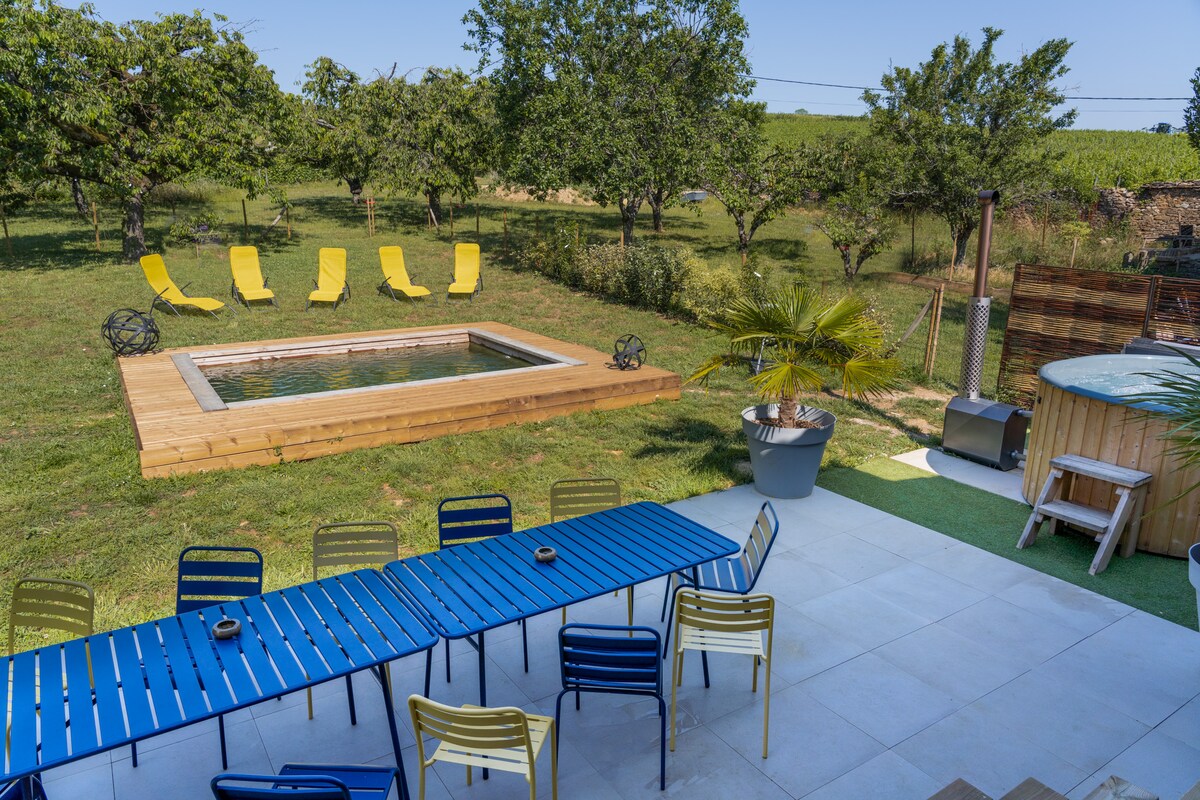 Spesielle COVID 19 tiltak for å beskytte reisende og gjester. Den uventede pausen ligger i en felles gårdsplass, i ro og grønn. 10 minutter fra Mâcon sentrum og i nærheten av TGV-stasjonen, motorvei og RCEA. Vi bor på stedet og kan gi reisende råd om hvordan de kan oppdage området. Besøk i vinkjeller og smaking, geit- og storfeanlegg. Grønn vei i nærheten. Mulighet for å låne sykler Fellesbibliotek. Brettspill. Pris: 100 euro per natt