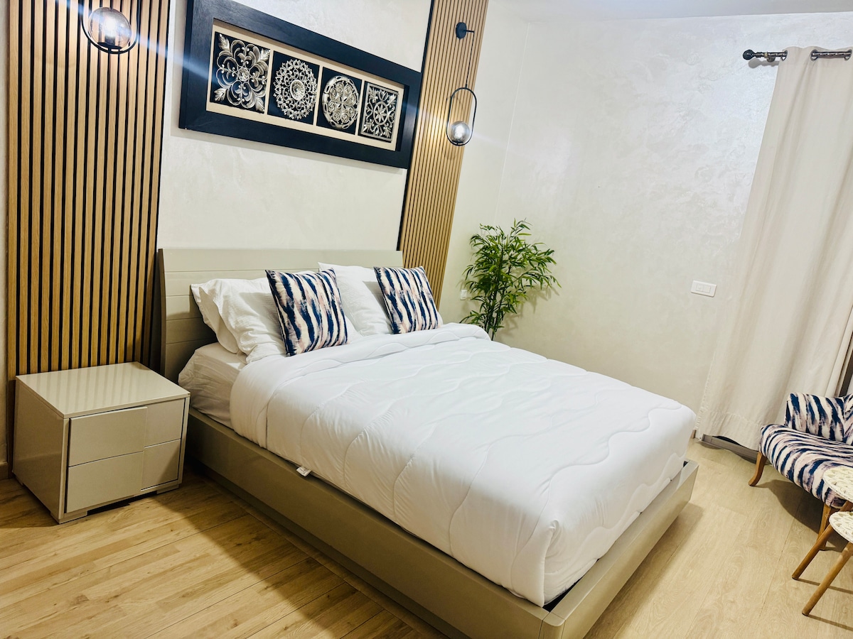 Luksusleilighet ★ ved stranden - Bouznika ★ Vil du ha et opphold med komforten til et 5-stjerners hotell til en rimelig pris? Du trenger ikke lete lenger, bestill nå! 🌟 Komfort, eleganse 🌟 Nyt en eksklusiv leilighet ideelt plassert i en sikker bolig, en kort spasertur fra stranden og de viktigste attraksjonene i Bouznika. Ultrahurtig fiberoptisk✅ tilkobling ✅ Perfekt for ferier eller jobbreiser Fredelig ✅ omgivelse, sikkerhet døgnet rundt.