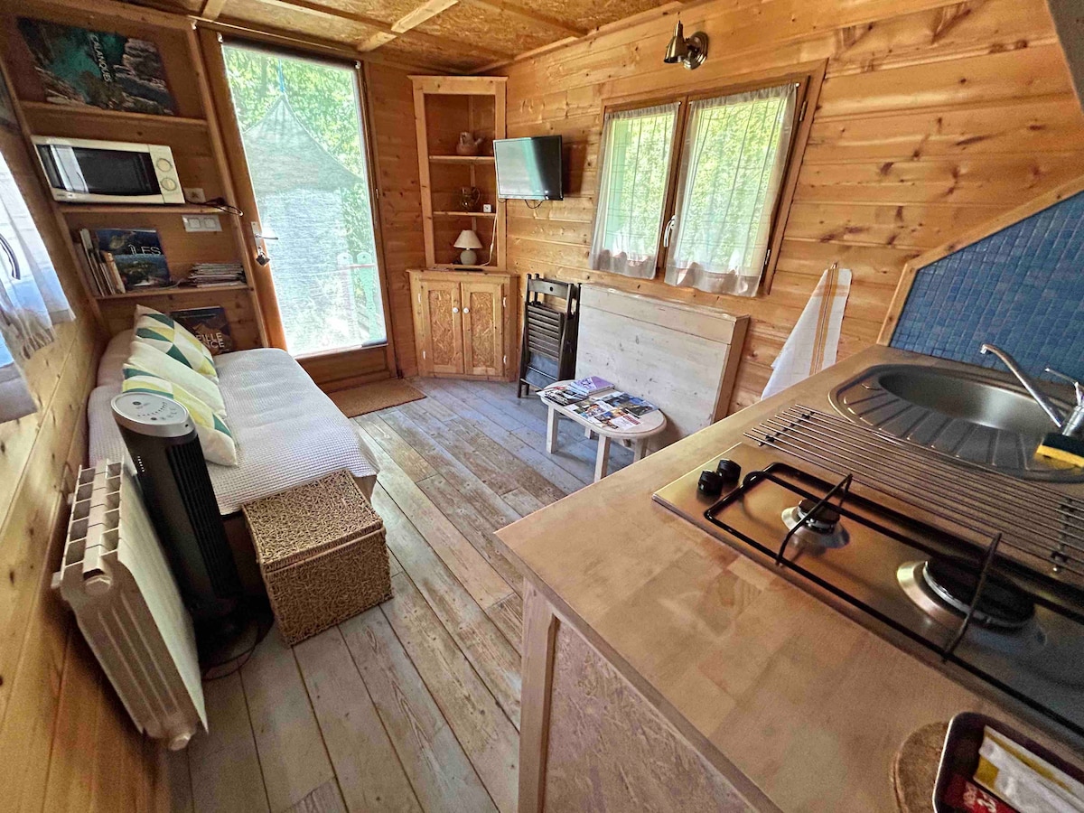 Fantastisk utsikt og absolutt ro i hjertet av den provençalske furuskogen, 5 minutter med bil fra den klassifiserte landsbyen Jouques. Uavhengig studio med alle bekvemmeligheter, klimaanlegg med terrasse på pæler. Tilgang til svømmebassenget og petanque-bane i samråd med eierne (se husets manual). Mange muligheter for fotturer og/eller terrengsykling. Muligheter for selvbetjent ankomst. Vær oppmerksom på at Tiny House har en stige for å få tilgang til sengen på mesaninen.