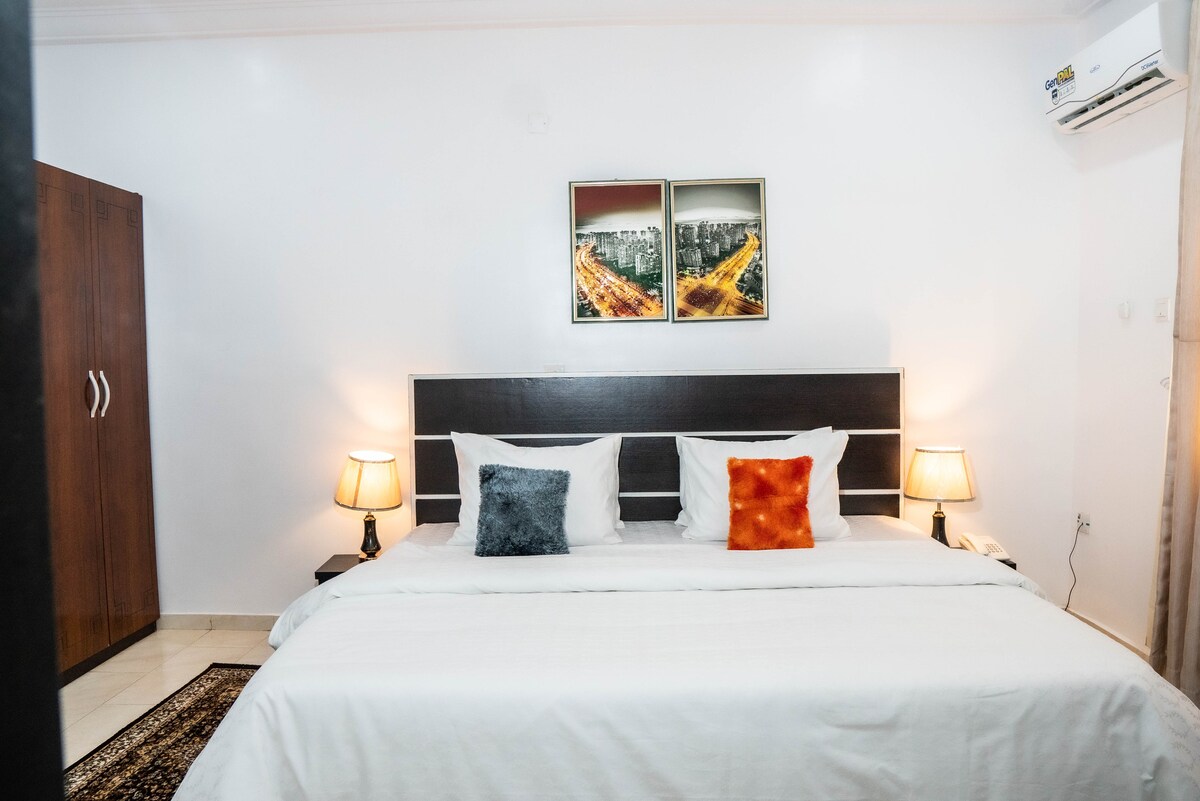 Besøk DelMor Short let Apartments, hvor luksus er vårt varemerke. Det ligger i et rolig og trygt miljø i Lekki i Lagos i Nigeria. Hver ekspansive ettromsleilighet har en møblert stue, eget soverom og et velutstyrt kjøkken med de fineste apparater og beslag. Vi tilbyr uavbrutt strømforsyning, superrask fiberoptisk trådløst nettverk, overvåking i fellesområder og eksternt miljø, vaskeritjenester, smart-TV-er og mye mer. Vi lover å gjøre oppholdet ditt minneverdig.