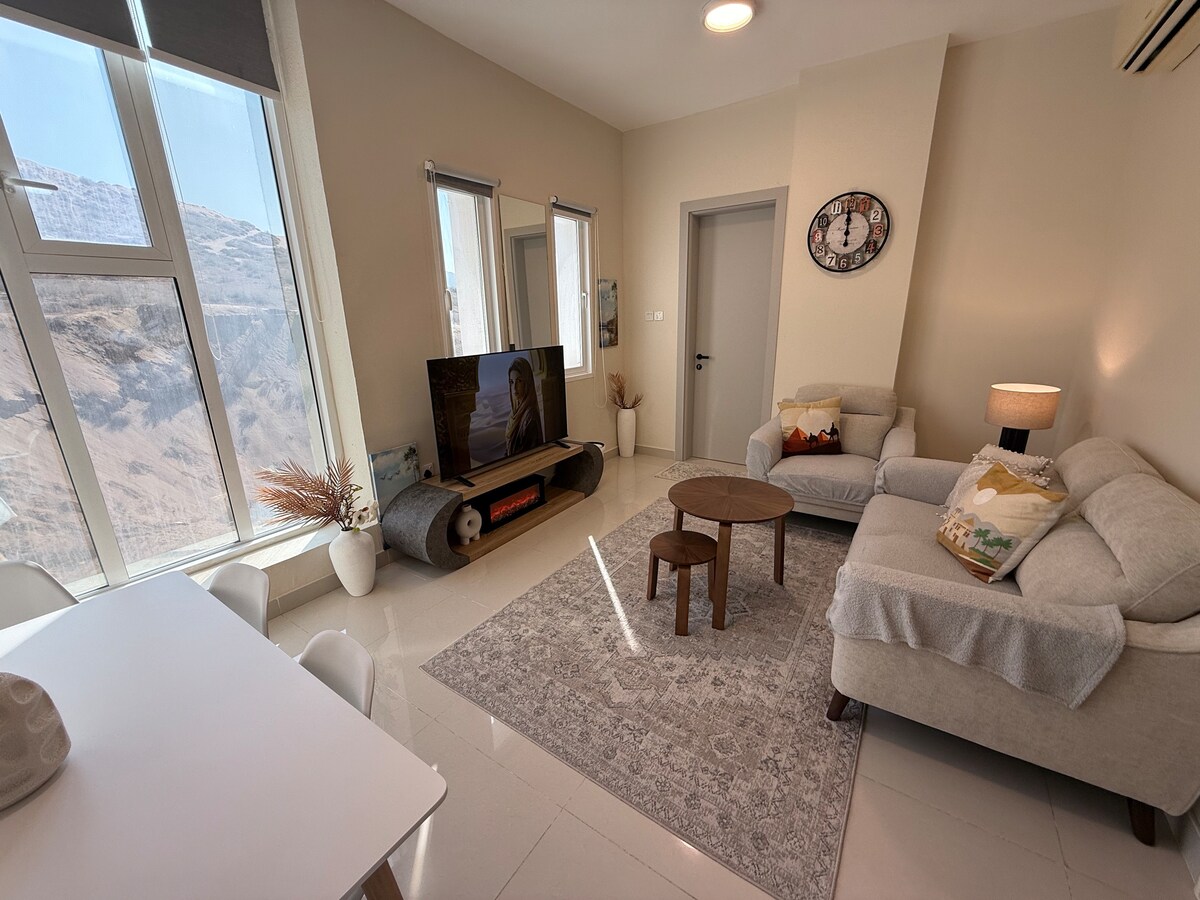 Våkn opp til fantastisk fjellutsikt i et stilig, moderne rom inspirert av Omans naturlige skjønnhet. Dette koselige tilfluktsstedet blander elegant design med varme detaljer, og skaper den perfekte balansen mellom komfort og sjarm. Det ligger i et rolig område i sentrum av byen og i nærheten av alle kjøpesentrene, restaurantene og de avslappende stedene, og det er ideelt for avslappende morgener, utsikt mot solnedgangen og uforglemmelige opphold.