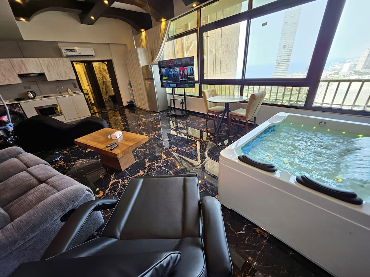 Nyt en luksuriøs opplevelse i en eksklusiv leilighet med OLED-skjerm, lydisolering, luftrenser og en luksuriøs luftfrisker. Den tilbyr en komfortabel hovedseng, en VIP-massasjestol og en strekkbar avslapningsstol. Underholdning med Witness, Netflix og raskt 5G-nettverk. Den har en espressomaskin, LED-VARMER, strandgel og sjampo og et spesielt stativ. Alle detaljene er laget for din komfort og avslapning Det er strengt forbudt å holde fester og mas