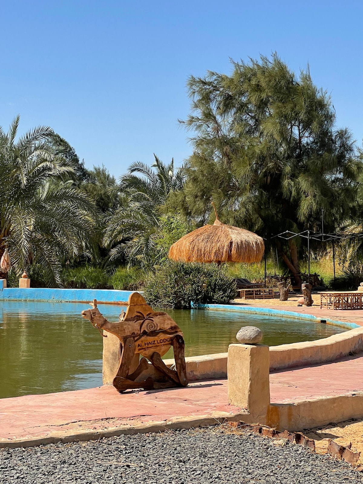 Kom deg bort fra alt når du bor under stjernene og blant datopalmer av Al Haiz Oasis. Dette unike beduinbygde huset ligger 30 minutter sør for Baharya Oasis, omgitt av Svartefjellene, på privat land, og er en del av et større ecolodge-kompleks. Den har bad med 1 soverom (king- og enkeltsenger) bad, sitteområde og stue. Eiendommen har personale, kokk og kjøkken i fellesrommet, ferske vann kilde basseng og flere hektar med dyre- og dategård. Prisen inkluderer frokost.