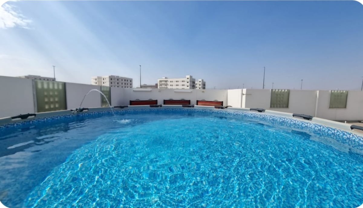 En særegen moderne leilighet med det nyeste designet og de beste fasilitetene. Vi er veldig interesserte i kunden når det gjelder renhold og daglig sterilisering, profesjonell kundeservice (vi er stolte av å evaluere kundene våre Alali Lina) Inneholder: Komfortabel queensize-seng Fire enkle senger Elegant økt med smart-TV Biljardbord Toalett Wifi opptil 250 Mbm Det er en heis Smartinngang Parkering. Beliggenhet: Beliggende i et livlig og trygt område. Al-Haram al-Nabawi🕌: 5–7 minutter🚗 Flyplass✈️: ti minutter.🚗 Haramain-toget🚆: 8 minutter.🚗 Enten du besøker byen for turisme eller forretninger, Dette stedet er det perfekte valget for innkvartering.