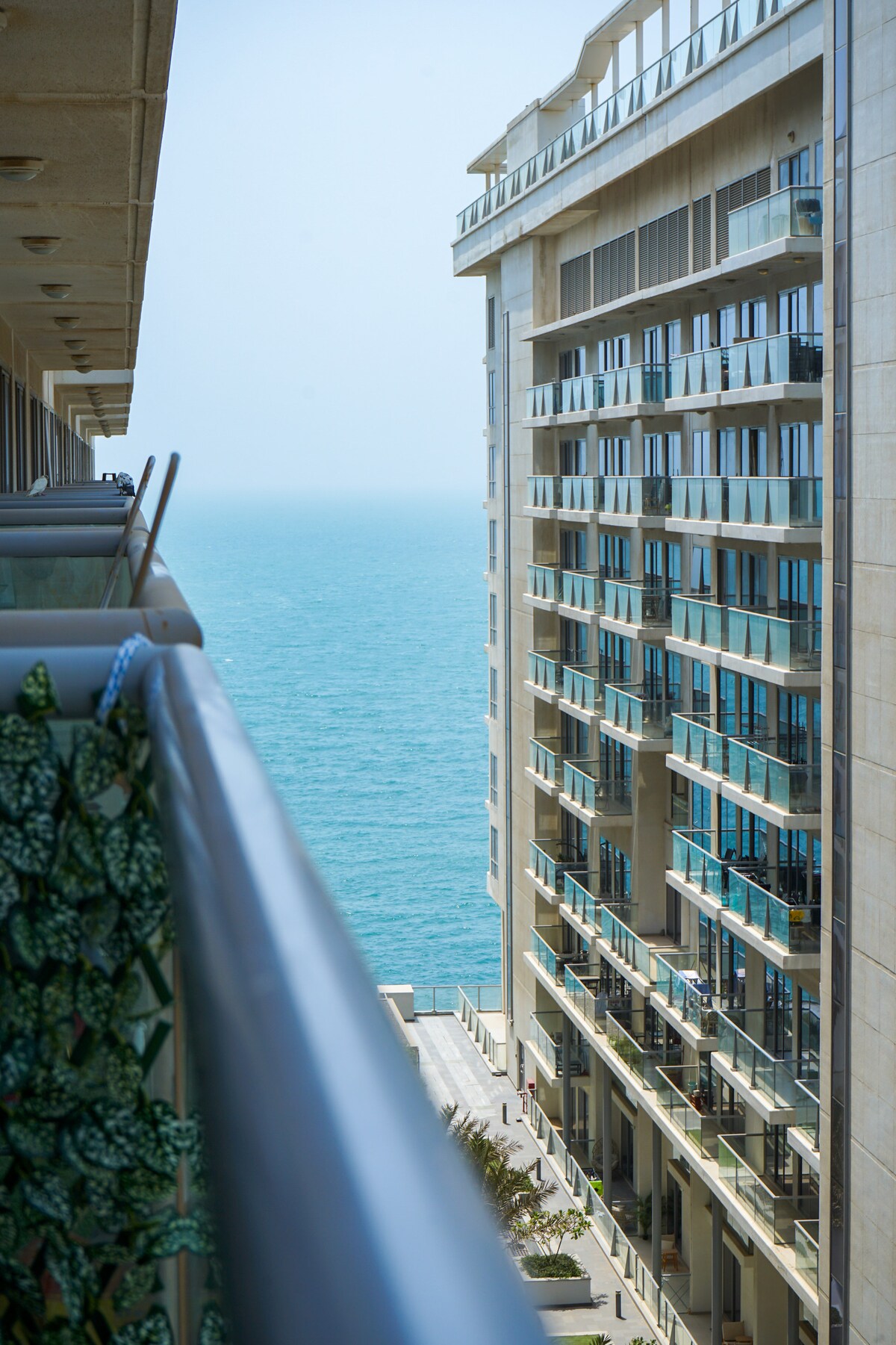 OVERSIKT OVER LEILIGHETEN En vakkert, nymøblert, moderne leilighet med to soverom i 7. etasje, som tilbyr fantastisk havutsikt og alle fasilitetene for et komfortabelt og avslappende opphold for enslige, par og familier. Nyt tilgang til stranden, evighetsbassenget og treningssenteret. Perfekt plassert nær ørkenen og Hajar-fjellene, noe som gir både eventyr og avslapning. Med utsikt over havet, lagunen og kasinoet.