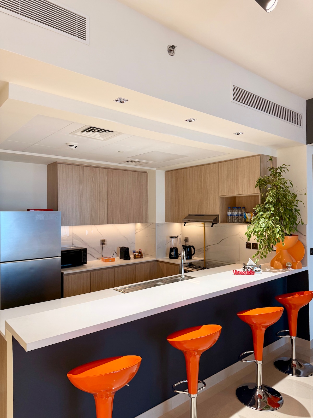 Slapp av i denne elegante studioleiligheten ved den skandinaviske kysten, hvor beroligende blåtoner, en ny massasjestol for hele kroppen, havinspirert innredning og naturlige teksturer skaper et rolig tilfluktssted. Denne moderne studioleiligheten har en perfekt beliggenhet på Al Marjan-øya i nærheten av den kommende Wynn Resort, og den tilbyr smarte fasiliteter, en sjarmerende balkong med delvis havutsikt for å nyte havbrisen og eksklusiv privat tilgang til stranden. Svøm, sol deg eller utforsk nærliggende kaféer og restauranter for et minneverdig opphold.