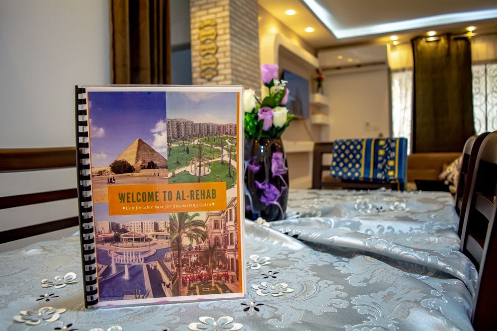 Du vil være i nærheten av alt når du bor på dette sentralt beliggende stedet i Rehab City New Cairo, 20 minutter fra Kairo internasjonale lufthavn. Et komfortabelt og praktisk sted å bo i AL Rehab. Leiligheten er fullt utstyrt med aircondition. Dessuten har den en avslappende utsikt over grøntområder som får deg til å føle deg rolig og uthvilt. Den har to soverom med plass til opptil fire gjester.