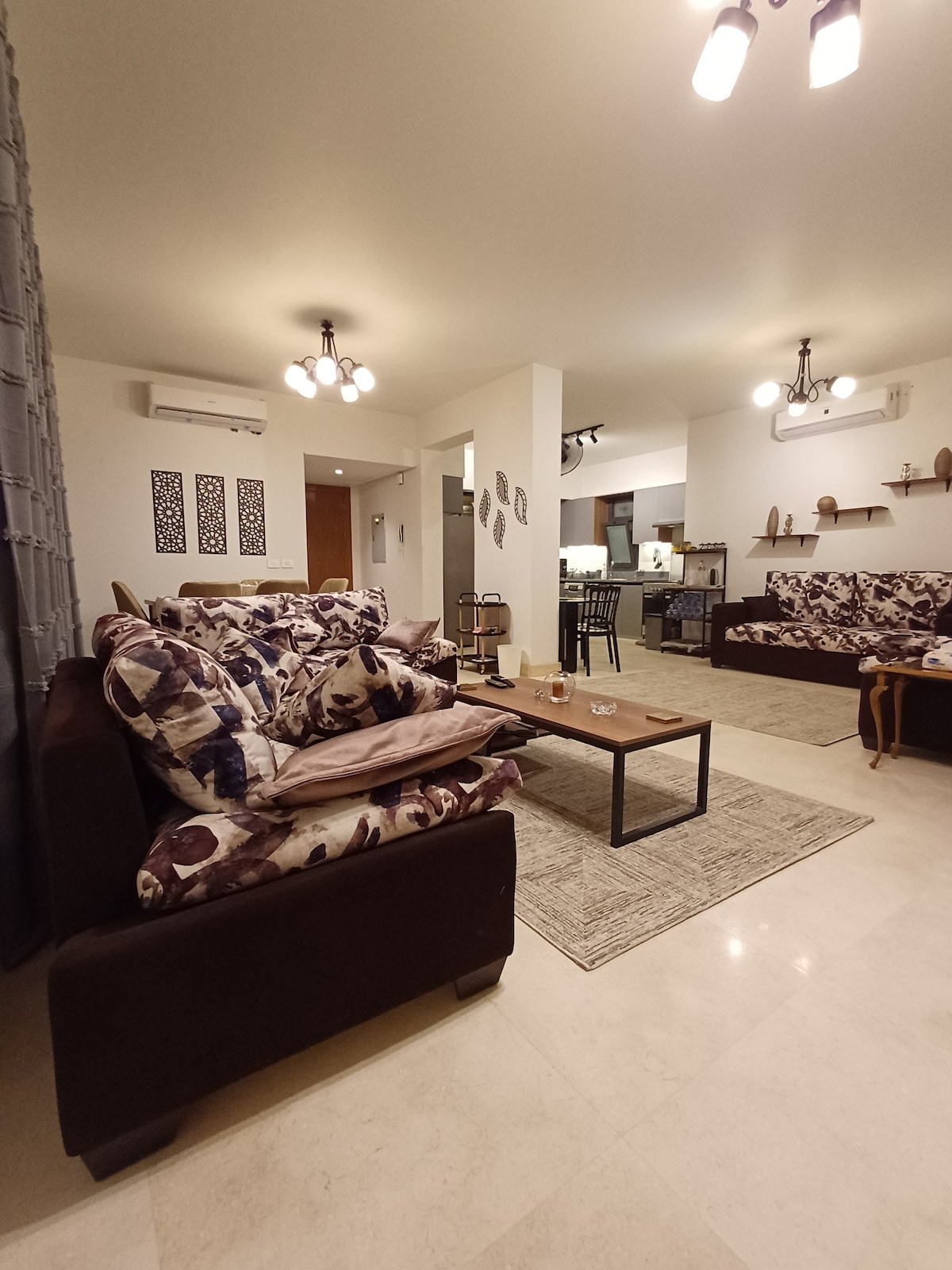 Helt ny, koselig leilighet i El Mansoura – Talkha City. Denne familievennlige leiligheten tilbyr et komfortabelt oppholdsrom for familier. Leiligheten har to lukkede soverom, ett med en king size-seng og påkledning, mens det andre har to enkeltsenger, et moderne, unikt bad, en romslig, moderne stue med spisebord og et fullt utstyrt kjøkken. Den er fullt utstyrt med alle fasilitetene som trengs for å gjøre oppholdet ditt unikt og minneverdig. Det er smart-TV, trådløst nettverk.