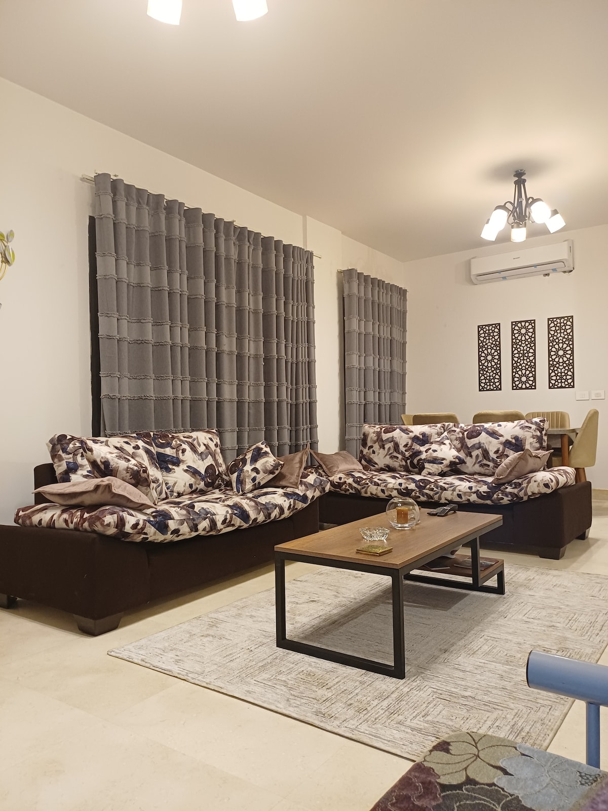 Velkommen til den fredelige hageleiligheten vår i første etasje i Alburouj Compound. Med to komfortable soverom, moderne bad og et stort åpent oppholdsrom er leiligheten vår perfekt for avslapping. Nyt matlaging i det fullt utstyrte åpne kjøkkenet eller slapp av i den private hagen. Med raskt trådløst nettverk, klimaanlegg i alle rom og nærhet til lokale fasiliteter, tilbyr vårt stilige tilfluktssted den ideelle blandingen av ro og bekvemmelighet.