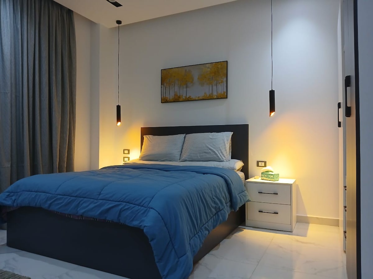 Luksuriøs duplex i et rolig og trygt nabolag, perfekt beliggenhet bare tre minutter med bil fra Zagazig University, i nærheten av alle de populære stedene du trenger, mange supermarkeder og restauranter i nærheten. 24 timers sikkerhet (vaktmester), utendørs sikkerhetskameraer. Duplexen inneholder et stort hovedrom, alle soverom med klimaanlegg, spiseplass, fullt utstyrt kjøkken, terrasse i andre etasje og et arbeidsområde med raskt trådløst nettverk. Jeg forsikrer deg om at du får en god opplevelse under oppholdet.