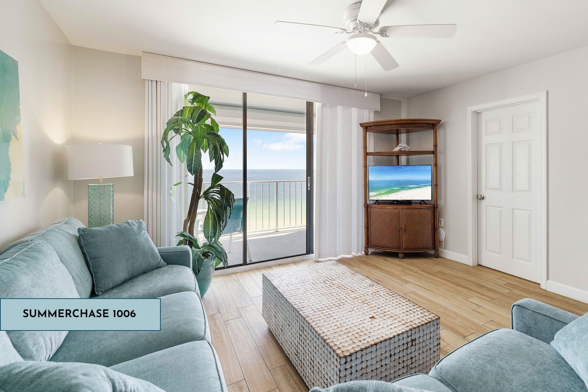 Fantastisk utsikt mot golfen fra nesten alle rom i denne leiligheten med to soverom og to bad! Den ligger i 5. etasje, har plass til 8 personer og har en stor balkong som er perfekt for solnedganger, avslapping eller utendørs måltider. Dette oppdaterte stedet ligger bare noen skritt fra den hvite sanden, og er flott for familier. WindDrift tilbyr både strand- og båttilgang – nyt det beste fra begge verdener! Fasilitetene inkluderer to bassenger, pluss tennis- og pickleballbaner.