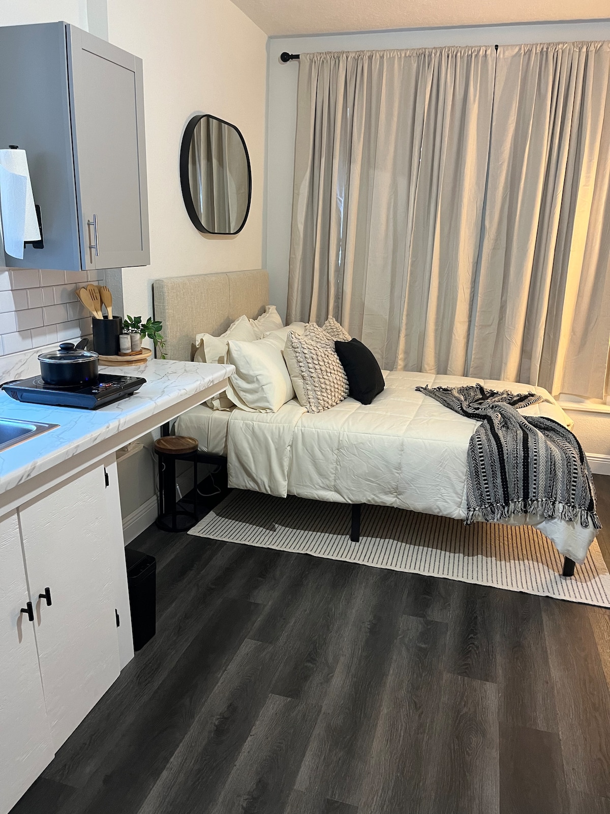 Privat studio nær Orlando lufthavn | kingsize-seng Bo i dette koselige private studioet, bare 15 minutter fra Orlando International Airport. Nyt en kingsize-seng, et tekjøkken med mikrobølgeovn og kjøleskap og en mini AC-enhet for din komfort. Rask og pålitelig TRÅDLØST NETTVERK. Den inngjerdede terrassen med en inngjerdet inngang gir ekstra privatliv og sikkerhet, og du har en egen parkeringsplass. Perfekt for forretninger eller fritid, i sentrum av Orlando. INGENTING ER DELT.