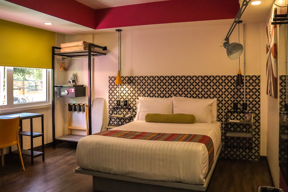 Casa Carmelia feirer kunsten som formet Mexico. "Frida" (#05) Roof-top suite tilbyr en luksuriøs kingsize-seng, privat bad, hageterrasse og moderne teknologi for avslapning... Som lidenskapelig og unik som Frida Khalos verden. Få skritt fra den travle Condesa-scenen, omgitt av restauranter, bakerier, barer og frodige parker, kan gjestene nyte fellesområder: utstyrte kjøkken, spiseplass og takterrasse. Slapp av og nyt den pulserende energien i La Condesa. 🚧 nabokonstruksjon. Ørepropper er tilgjengelige.