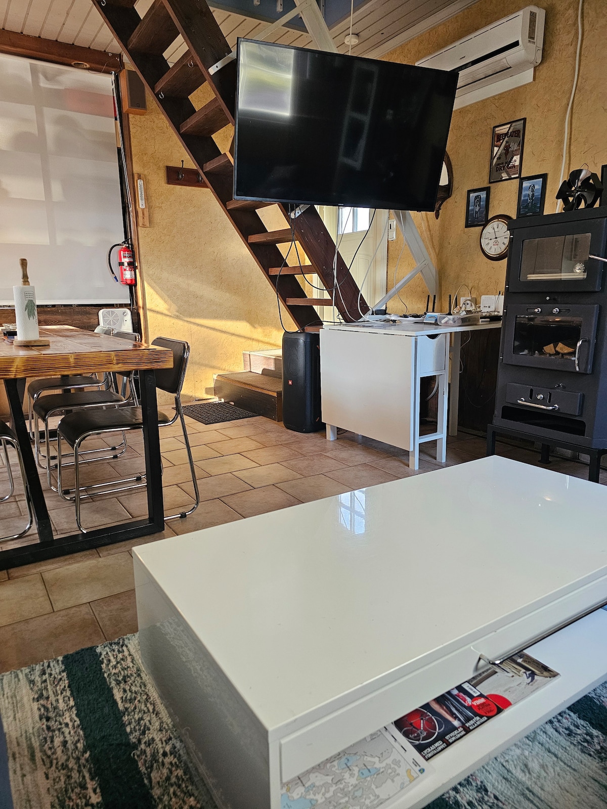 Ta en pause og slapp av i gjestehuset vårt som ligger i Kungsö ca. 10 km utenfor Mariehamn. Gjestehuset inneholder en stedsbygd køyeseng med to komfortable senger, et lite tekjøkken med kokeplate og et lite kjøleskap. Sitteplasser for to personer. Dusj er på terrassen utenfor gjestehuset, men også inne i gjestehuset og et utetoalett rundt hjørnet. Gjestehuset er forbundet med boligen og deler terrassen. Her bor vi to voksne, en nysgjerrig liten gutt og to små hunder som løper løs på tomten.