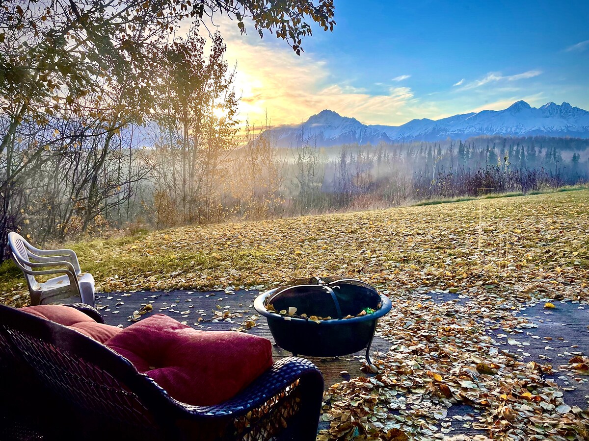 11 hektar arbeidsgård ligger ved foten av en snødekt ås, minutter fra sentrum av Wasilla. Avsidesliggende hjem med flotte lokale attraksjoner. Med enkel tilgang til Parks Highway kan du bruke dette lyse og luftige hjemmet som utgangspunkt for Denali, Hatchers Pass og mer, eller tilbringe dagen med å lade opp, slappe av med en bok på terrassen og lytte til dyrene. 2024 ny høylandskjøtt! Kom og gi en ny kalv flaske!