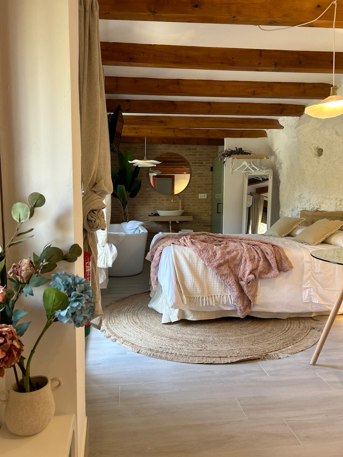 Cova L'Aljub er et sjarmerende hulehus som ligger i det historiske middelalderbyen Bocairent, i Sierra de Mariola naturpark, 81 km fra Valencia. Det tilbyr et fredelig og bærekraftig tilfluktssted med et unikt mikroklima som sikrer komfort hele året. Det er ideelt for de som liker å se soloppgangen eller foretrekker å slappe av ved solnedgang, omgitt av et magisk og innbydende miljø.