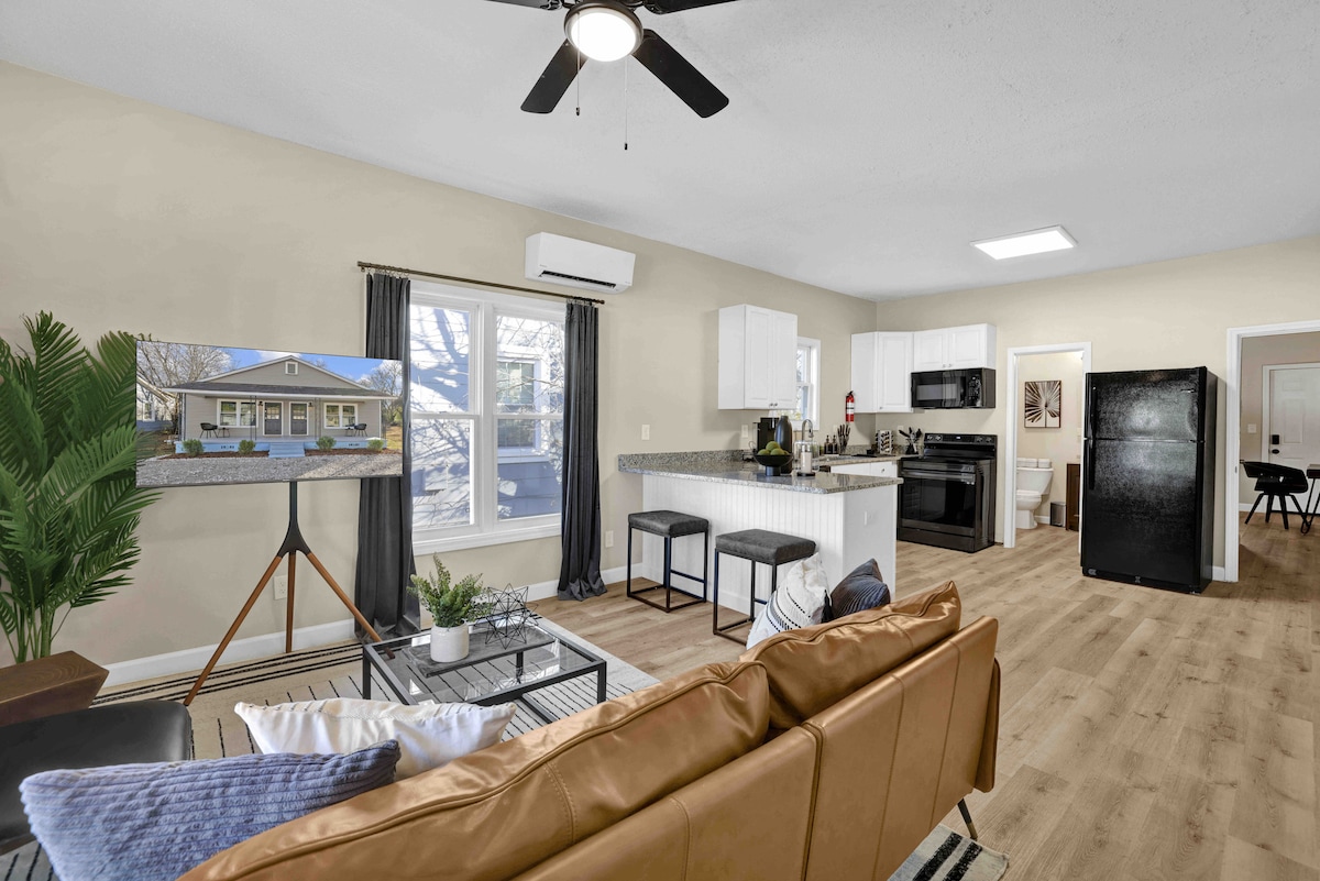 Kom og slapp av på Winner's Circle - et fullstendig renovert hjem i enden av en rolig blindvei med et delt arrangement av tre soverom/to bad, romslige fellesområder fylt med spill og bøker, og en uteplass med gassgrill og uteservering for din fornøyelse. Den store bakgården har rikelig med uteområde. Hjemmet ligger bare fire minutter fra vestinngangen til Sand Mountain Park og amfiteateret, og 15 minutter fra Lake Guntersville.