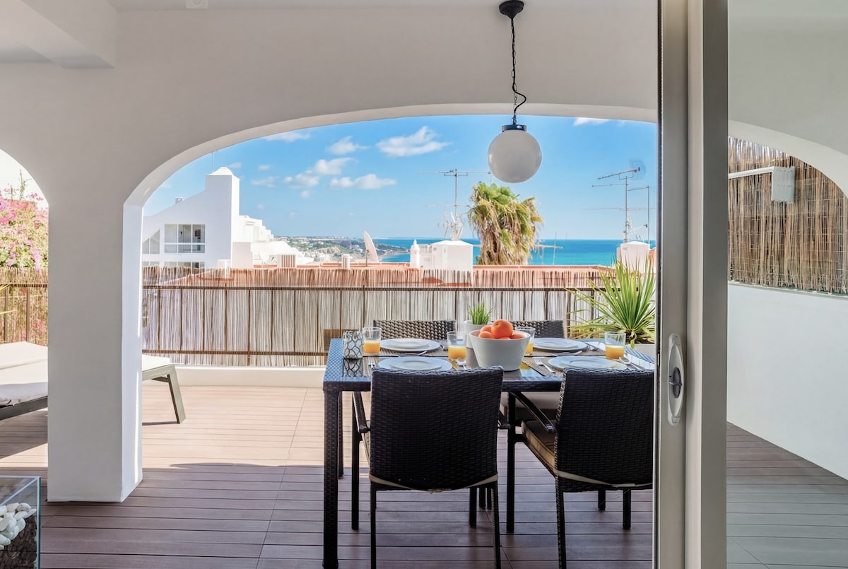 Romantic, bright & Stylish 2 bedroom and 2 bathroom apartment, amazing ocean view from all windows, located in the heart of Albufeira, 200 metres from Peneco beach and 600 metres from pescadores beach Strong WiFi connexion, air conditioner and balcony Double glass windows and electric blinds Open Space in top floor Main square with bars, restaurants & live music 300m Free Parking near the apartment Stay in the real heart of Albufeira! The best location near everything without the nightlife noise