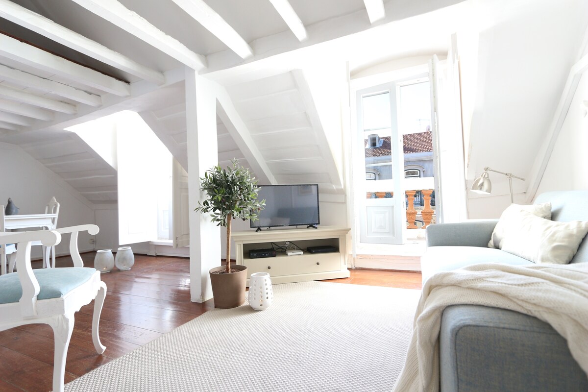 Med en fantastisk utsikt over elven Tajo skiller dette stedet seg ut for sine brente tregulv i gylne toner, noe som gir en unik og sofistikert atmosfære, og for balkongen med direkte utsikt over elven. Dette moderne loftet har plass til opptil fire personer på 94 kvm. Den ligger i fjerde etasje i en bygning med heis, i hjertet av det typiske Alfama-nabolaget. Du kan gå til alle de viktigste stedene i byen, noe som gjør dette stedet til en privilegert tilgang til Lisboa.