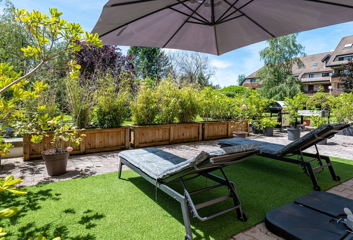 Leilighet med hage og utsikt over innsjøen 15 min fra Annecy