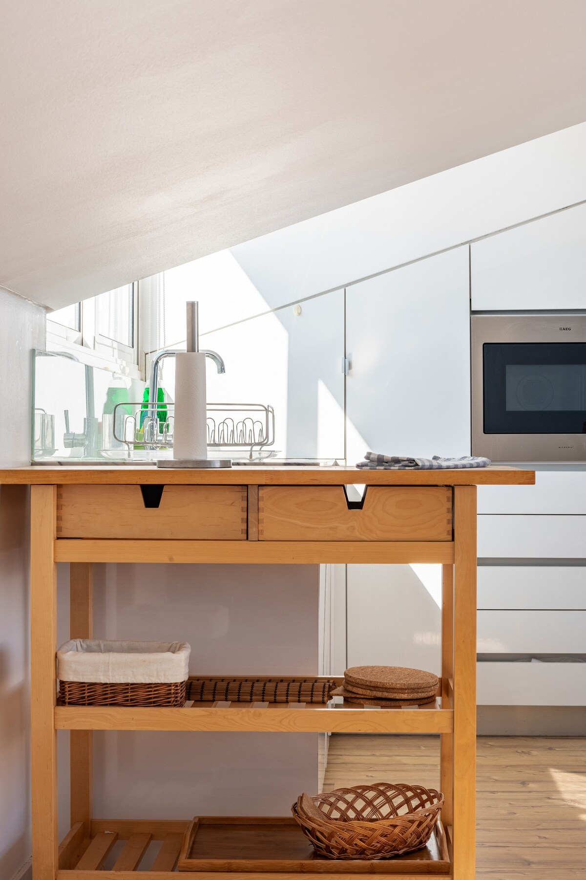 Romslig penthouseleilighet på 80 m² med utsikt over elven, som opptar hele andre etasje og har en privat balkong. Leiligheten har en kingsize-seng som kan gjøres om til to enkeltsenger, og to sovesofaer (115 cm), og den har plass til opptil fire gjester. Den har et lyst bad med dusj og vindu, pluss et fullt utstyrt tekjøkken med stekeovn, oppvaskmaskin og en kjøkkenøy med barstoler. Ideelt for gjester som ønsker plass, privatliv og et lysfylt opphold med utsikt over elven.