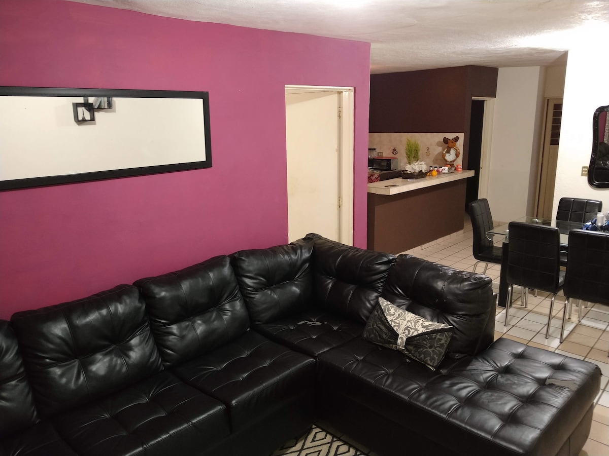 En leilighet med rikelig med parkering med en elektrisk port, tilgang til stedet er ganske enkel og autonom og ligger 50 meter fra den internasjonale veien (Mexico 15) samt en OXXO. Det har alt du trenger på kjøkkenet, TV med tilgang til Netflix , klimaanlegg, trådløst nettverk. Det er et HELT STED