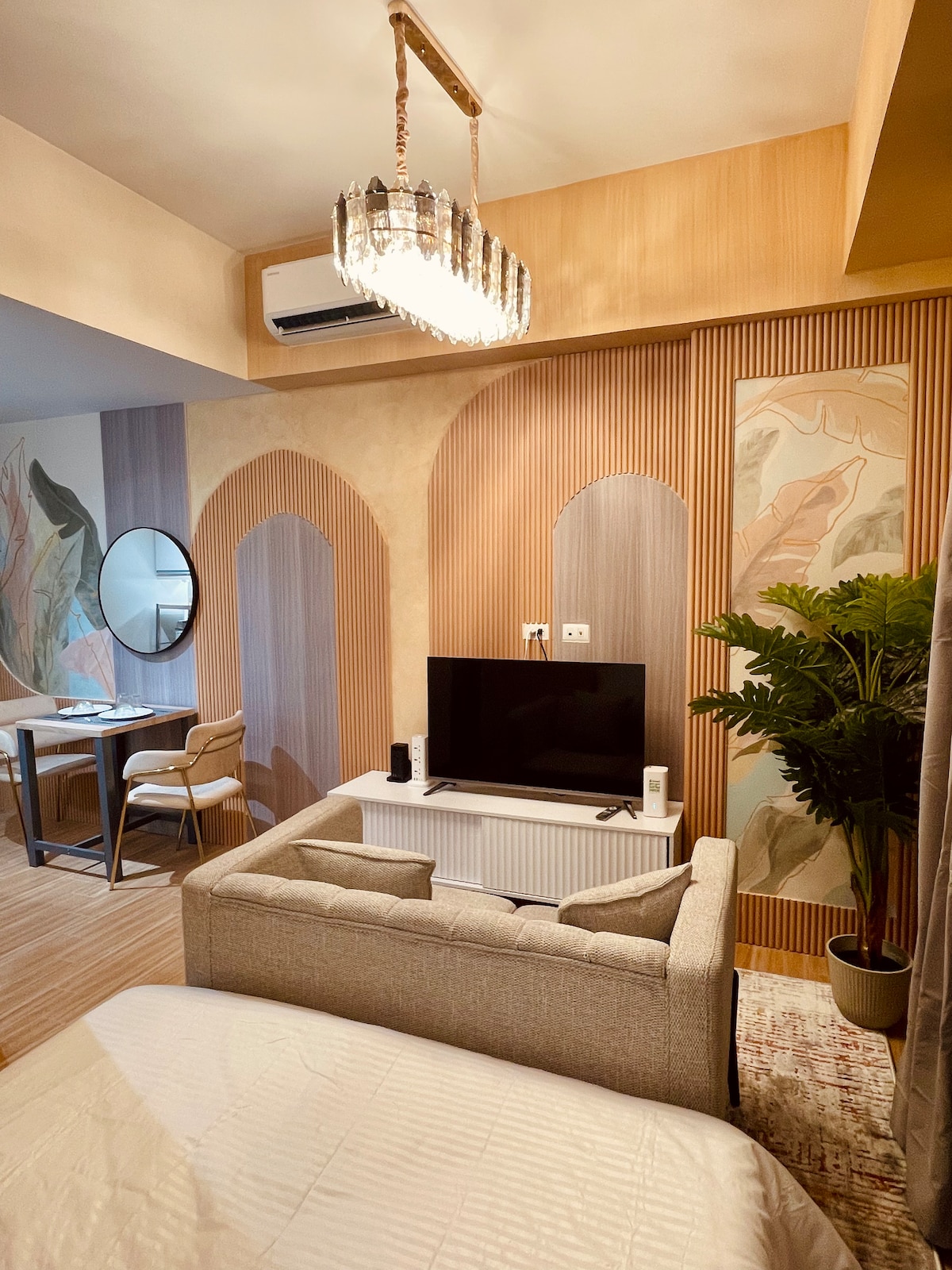 Slapp av i denne moderne, koselige leiligheten på SMDC Style Residences, som er gjennomtenkt designet med varm belysning og en ren, stilig utforming. Førsteklasses beliggenhet nær Iloilo Convention Center (ICC), Smallville Complex, Megaworld Iloilo Business Park, Emperador Distillers Iloilo, Festive Walk og SM City Iloilo – perfekt for forretnings- eller fritidsopphold.
