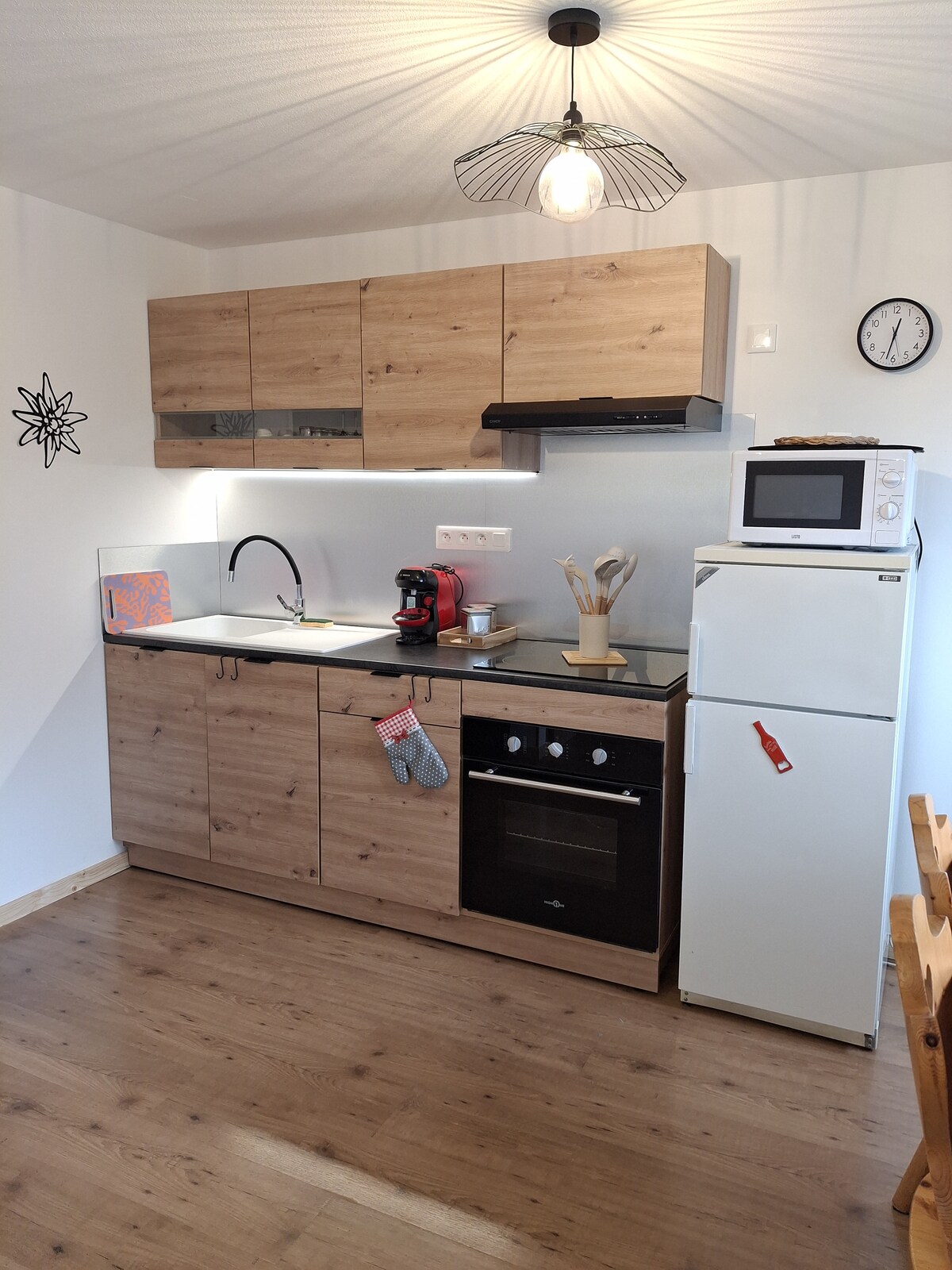 Stille første etasje for 2-4 personer , 20 m2 , ideelt for et par eller med barn (ingen lukket rom), fullt utstyrt studio med møblert terrasse, sykkel- eller skisenter med hengelås, privat parkeringsplass, i nærheten av sentrum med dagligvarebutikk, restauranter, bar, i starten av fotturer, sykling, overfor den gratis skyttelbussholdeplassen til ALLEMOND taubane to minutters kjøretur unna: timeplan på turistkontorets nettsted.
