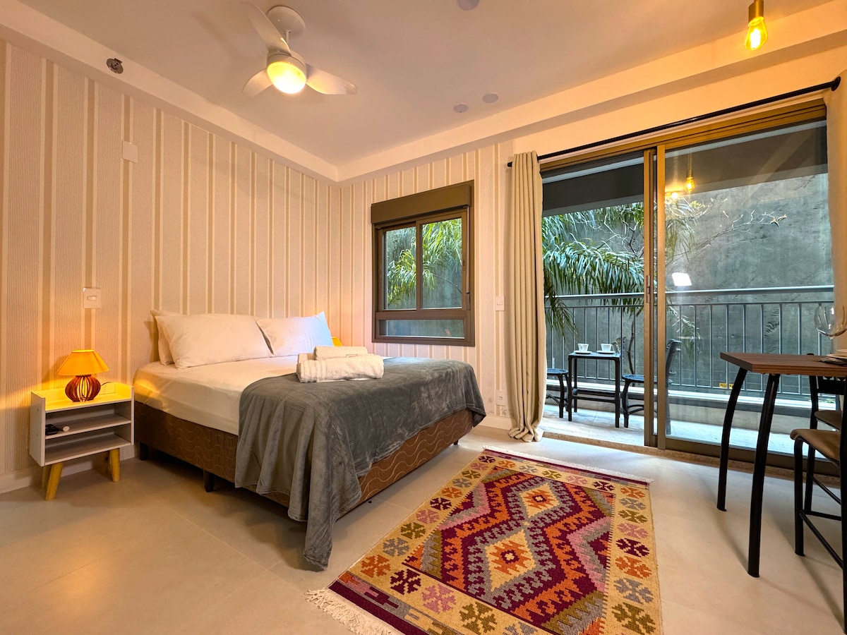 Nyt det boheme og kunstneriske Vila Madalena, fullt av barer, restauranter og kafeer. Du kan bli kjent med regionen eller til og med ta en tur til byparkene med en sykkel, som er tilgjengelig uten kostnad. Kommer du for å jobbe? Fokuser på det ved det komfortable bordet som vender mot den grønne balkongen med en vakker utsikt mot tretoppene. Nyt treningsstudioet, bassenget, saunaen og snookerrommet for fullstendig fritid.