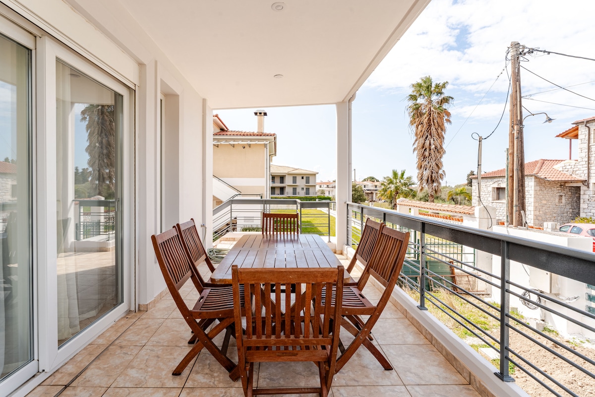 Romslige, nyoppførte lokaler, 50 meter fra havet, det perfekte stedet for lang- og korttidsopphold. Den ligger i et rolig nabolag, veldig nærme restauranter og kafeer, og ligger også i nærheten av sentrum av Vrachneika. Stedet ligger like ved flyplassen Araxos, i nærheten av havnen Patras og veldig nærme oldtidens Olympia, Delfi og bare to timer fra Aten.