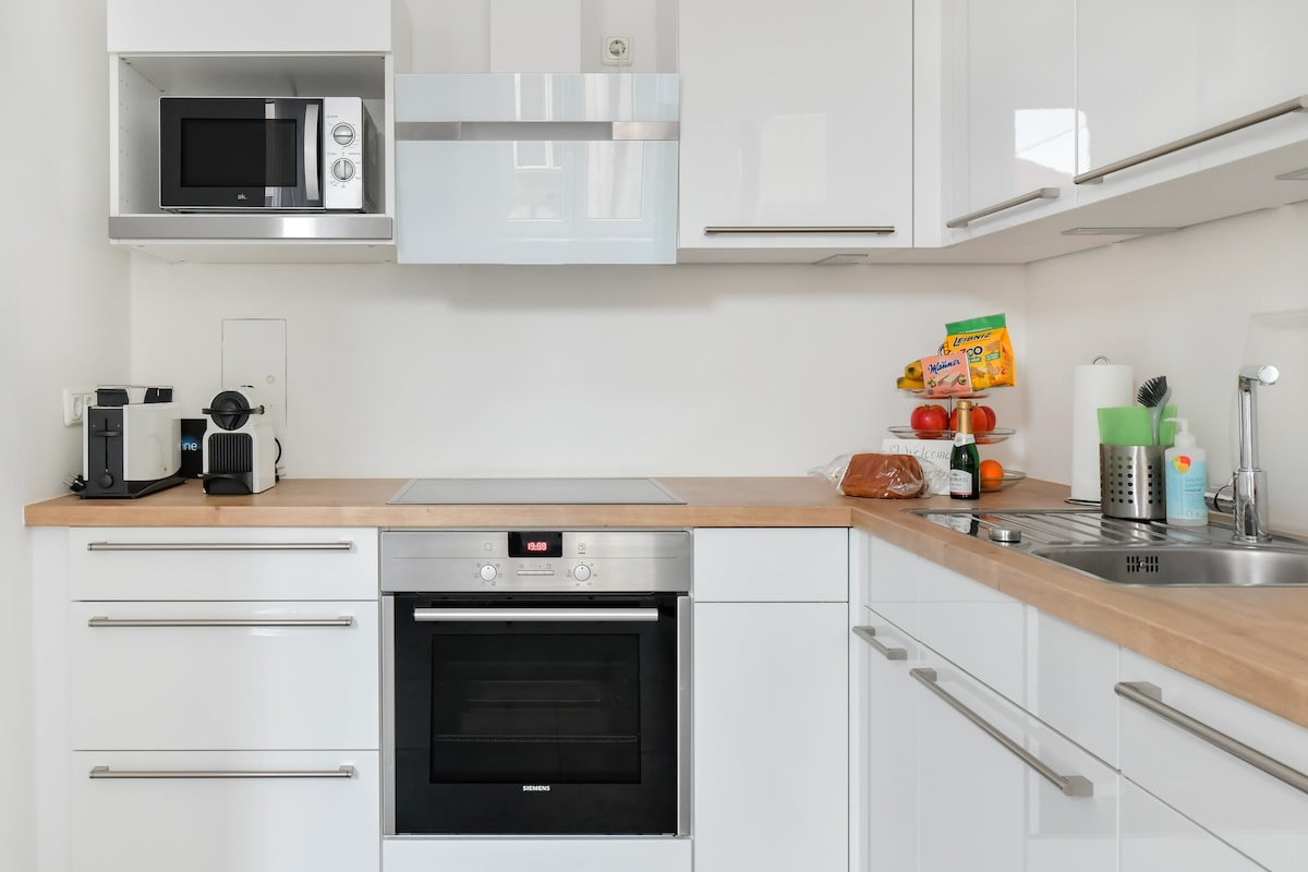Føl deg hjemme i denne lyse, koselige leiligheten med to soverom. Denne leiligheten i en historisk bygning imponerer med sin moderne stil og utmerkede forbindelser, bare ett minutt unna leiligheten. – 63 m² renovert historisk leilighet med heis. – ett soverom, kjøkken, stue med sovesofa med madrass på 160 x 200 cm, bad med badekar, separat toalett – 0–15 minutter med offentlig transport til 1. distrikt, Schottentor, og ni minutter med bil. – Smart-TV, 500 Mbps internett, Netflix. – Vaskemaskin/tørketrommel.