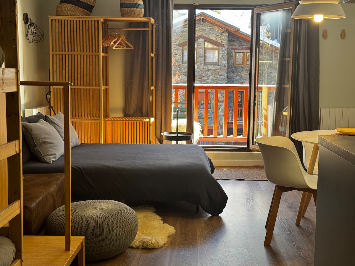 ✨ Koselig studio for fire gjester (to voksne + to barn opptil tolv år), totalrenovert og utstyrt med alle detaljer. Solskinn 🌞 med spektakulær utsikt over Incles-dalen, mellom Soldeu og El Tarter (Grandvalira). Perfekt for å koble av, puste frisk luft og nyte fjellene.