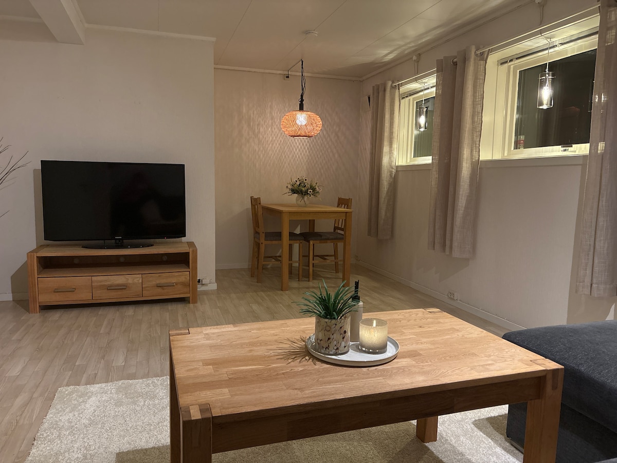 Sokkeleilighet med egen inngang, soverom, stue, dusj, badstue og toalett. I stue er det kjøleskap, mikrobølgeovn og vannkoker. I stue er det også sovesofa som kan benyttes som seng. For allergikere gjøres det oppmerksom på at det er hund i etasjen over. Fem minutter å gå til sentrum, med busstasjon, butikker og restauranter. Ti minutter til Finnmarkshallen, UiT og turområder. Parkering for bil på eiendommen. Sykkel og motorsykkel kan parkeres i låst garasje. El billader i nærområdet.